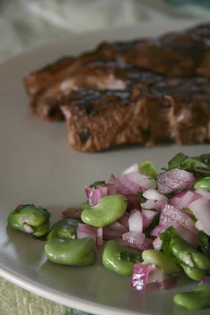 Zen and the Art of the Fava Bean - Fava Bean Salad with Marinated Lamb Chops