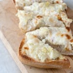 Think of this as Cheesy Garlic Bread meets Baked Artichoke Dip, only even better - it's ooey, gooey and pretty much guaranteed to ruin your appetite for dinner (but it's totally worth it).