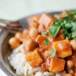 This vegetarian curry comes together in a flash using (mostly) pantry ingredients. Serve it with freshly cooked brown rice or oven-warmed naan for an easy weeknight meal.